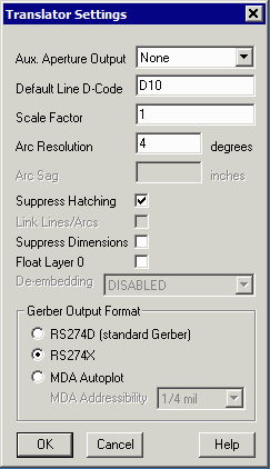 The user can configure ASM 502's behavior quickly and easily. For example you can choose to output standard RS274D and also the more advanced RS274X or MDA Autoplot. ASM 502 remembers your settings in the .ini file so that after you have used the program once, you don't need to re-enter settings that never change.