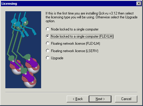 Because we are doing a node locked install we select: Node locked to a single computer (FLEXLM). Then Click on the Next button. Entering the License Strings You should have received the license strings by email. Copy these to the Windows clipboard (Ctrl-C) and then paste them (Ctrl-V) into the window provided. Then click on the Next button.